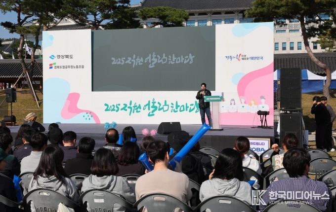 [ 한국미디어뉴스 이보영 기자 ] 경상북도청공무원노동조합은 4일 도청 새마을광장에서 역대 위원장들과 1,500여 명의 직원이 함께한 가운데 ‘2025년 직원 어울림 한마당’ 행사를 개최했다.