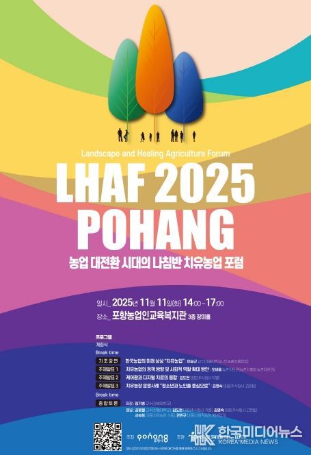 [ 한국미디어뉴스 이보영 기자 ] 포항시는 오는 11일 포항농업인교육복지관 3층 장미홀(북구 흥해읍 성곡서로 32번길 7)에서 ‘농업 대전환 시대의 나침반, 치유농업 포럼’을 개최한다.