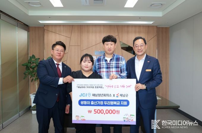 [ 한국미디어뉴스 이종철 기자 ] 해남군과 해남청년회의소는 쌍둥이 출산가정에 두리행복금과 육아용품을 전달하며 따뜻한 축하의 시간을 가졌다.