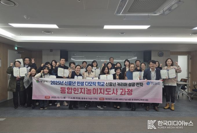 [ 한국미디어뉴스 이원영 기자 ] 양산시는 지난 11월 4일 양산비즈니스센터에서 4층 세미나1실에서‘신중년 인생 다모작학교’ 수료식 및 통합인지놀이지도사2급 자격증 수여식을 가졌다.