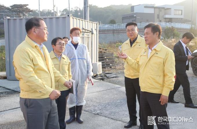 또한 시 축산부서 관계자들과 함께 방역관리 상황을 면밀히 살피고, 현장에서 차단방역에 힘쓰고 있는 근무자들을 격려하며 빈틈없는 철저한 방역을 요청했다.