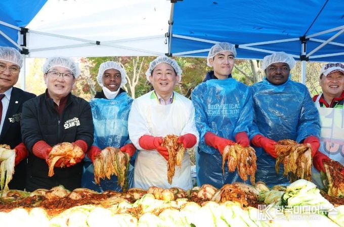 [ 한국미디어뉴스 이보영 기자 ] 대전 서구는 6일 둔산동 샘머리공원에서 열린 서구 자원봉사센터 주최‘함께하는 기쁨, 사랑 가득 김장 나눔’ 행사에 배재대학교 유학생인 정부 초청 외국인 장학생 30명이 참여했다고 전했다.