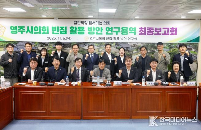 [ 한국미디어뉴스 이보영 기자 ] 영주시의회 의원연구단체‘빈집 활용방안 연구회’는 11월 6일 시의회 소회의실에서 '영주시 빈집 활용방안 연구용역 최종보고회'를 열고, 지역 내 빈집 문제 해결과 활용방안에 대한 심층 논의를 진행했다.
