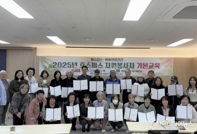 [ 한국미디어뉴스 김서안 기자 ] 양평군은 6일 ‘2025년 호스피스 자원봉사자 기본교육’을 성공적으로 마무리하고 총 21명의 수료생에게 수료증을 수여했다.