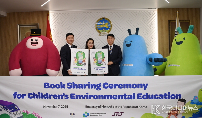 [ 한국미디어뉴스 이원영 기자 ] 기후에너지환경부(장관 김성환) 산하 수도권매립지관리공사(사장 송병억)는 국토교통부 산하 철도공기업인 주식회사 에스알(대표이사 이종국)과 공동 제작한 어린이 환경교육 도서*의 영어·몽골어 번역본을 출간하고, 국내외 배포를 위해 7일 주한몽골대사관에서 도서 전달식을 개최했다.