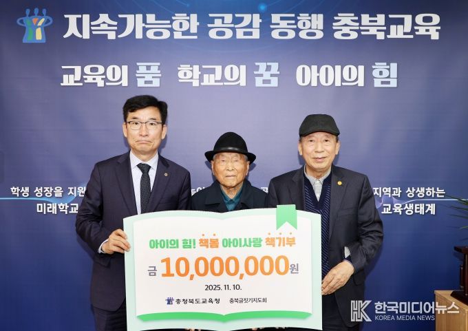 [ 한국미디어뉴스 김풍옥 기자 ] 충청북도교육청은 10일 오전, 교육감실에서 '아이의 힘! 책봄 아이사랑 책기부' 기탁식을 개최했다.