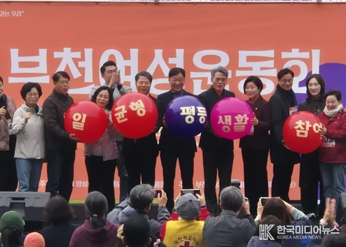 [ 한국미디어뉴스 김만길 기자 ] 부천여성청소년재단이 운영하는 부천시여성회관은 ‘2025 양성평등주간' 연속행사로 일상 속 평등 문화 확산을 목표로 하는 시민 참여형 성평등 운동회를 11월 8일 오전 10시 토요일에 부천종합운동장에서 개최했다. 이번 행사는 ‘함께 걷는 우리’라는 슬로건으로 시민들과 여성단체 회원 500여명이 참가했다.