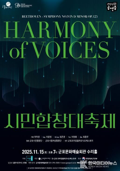 [ 한국미디어뉴스 이보영 기자 ] 군포문화재단은 오는 11월 15일 오후 7시, 군포문화예술회관 수리홀에서 시민과 함께하는 대규모 클래식 공연 “2025 시민합창대축제”를 개최한다.