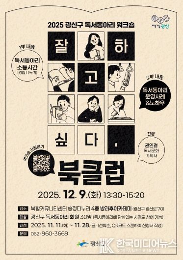 [ 한국미디어뉴스 이종철 기자 ] 광주 광산구가 12월 9일 송정다누리센터에서 독서 문화 교류의 장인 독서동아리 워크숍을 개최한다.