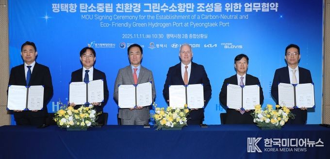 이날 협약식에서는 평택시, 평택지방해양수산청, 경기평택항만공사, 현대차, 기아, 현대글로비스 등 총 6개 기관이 참여해 수소 항만 조성에 공동으로 협력하기로 했다.