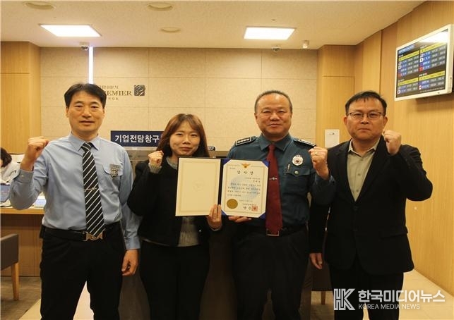 직원 A씨는 지난 10월27일 수일에 걸쳐 ATM기기에서 다액 현금을 인출하는 피의자를 유심히 지켜보다가 수상하다고 판단하여 신속히 112에 신고해 전자금융거래법 위반 피의자 검거 및 추가 피해 예방에 기여했다.