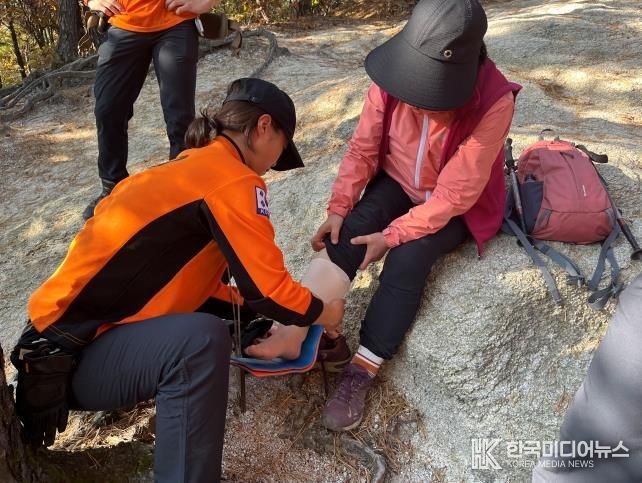 최근 단풍철을 맞아 불암산과 천마산 등 남양주시 주요 등산로에는 주말은 물론 평일에도 등산객이 크게 늘고 있다. 이날도 시민들의 산행 발걸음이 이어지던 가운데, 하산 중 낙엽에 미끄러진 등산객이 발목을 접질리는 사고가 발생했다.