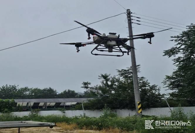 가을 수확기 야생멧돼지 농장 침입 위험이 높아짐에 따라 군은 민·관 협력 방식으로 드론을 투입해 농장 주변에 기피제를 집중 살포했으며, 접근이 어려운 임야 지역까지 방제 범위를 확대해 차단 효과를 극대화했다.