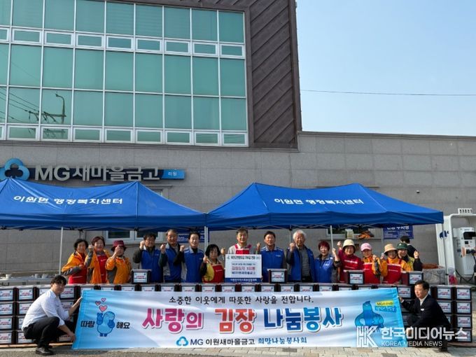 먼저 14일 이원새마을금고 희망나눔봉사회(이사장 이재헌, 봉사회장 유재숙)가 지역 내 취약계층의 따뜻한 겨울나기를 돕기 위해 김장김치(12L) 100통을 직접 담가 옥천읍지역사회보장협의체(공공위원장 곽상혁, 민간위원장 송유정)에 기탁했다.