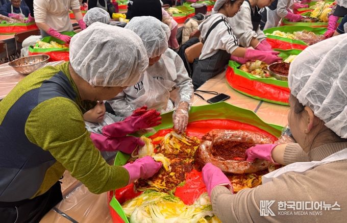 [ 한국미디어뉴스 김풍옥 기자 ] 증평군4-H연합회는 15일 증평군농업기술센터 마당에서 ‘사랑의 김장 체험행사’를 열고 다문화가정 20팀이 참여해 따뜻한 교류의 장을 마련했다.