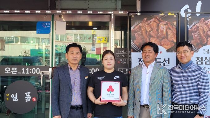 [ 한국미디어뉴스 김풍옥 기자 ] 충북 영동군 영동읍 지역사회보장협의체(민간위원장 김민수)는 17일 영동읍에 위치한 일품(대표 강병규)을 착한가게로 지정하고 현판을 전달 했다.
