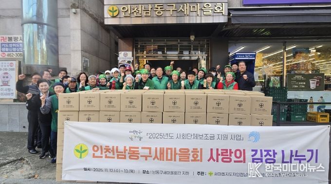[ 한국미디어뉴스 김만길 기자 ] 인천시 남동구 새마을회는 새마을회관에서 ‘2025 사랑의 김장 나눔 행사’를 열고, 취약계층 340가구에 사랑의 김장김치를 전달했다고 17일 전했다.