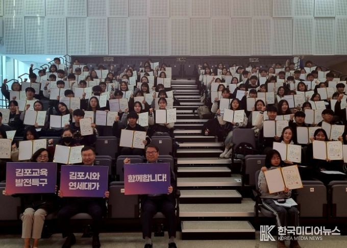 [ 한국미디어뉴스 이원희 기자 ] 김포시가 연세대학교와 손잡고 운영한 맞춤형 진로진학 멘토링 프로그램이 학생들의 큰 호응 속에 지난 15일 올해 수료식을 진행했다. 올해 첫 선을 보인 ‘교육발전특구 김포시-연세대 진로진학 멘토링’이 단순 학습 지원을 넘어 서로에게 소통을 통한 성장을 이뤘다는 점에서 큰 호응을 받고 있다.