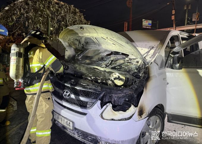 이후 엔진룸에서 불꽃이 일어나는 것을 확인하고 즉시 119에 신고한 뒤 차량에 비치된 소화기로 초기 진화를 시도했다.