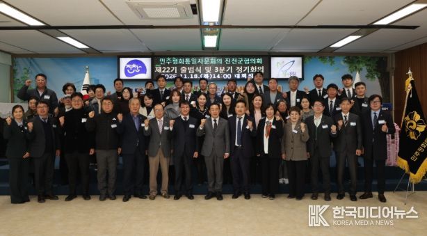 [ 한국미디어뉴스 김풍옥 기자 ] 헌법기관이자 대통령 직속의 통일자문기구인 민주평화통일자문회의 진천군협의회(회장 정창선)는 18일 진천군청 대회의실에서 제22기 출범식과 2025년 3차 정기회의를 개최했다.