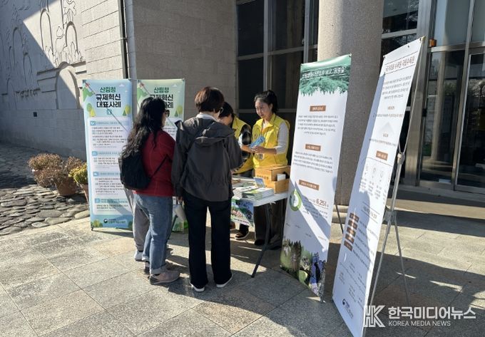 현장에서는 산림청의 2025년 상반기 대표 규제혁신 사례와 하반기 추진중인 규제합리화 사례를 설명한 규제혁신 홍보물을 배포하며 알기 쉽게 설명했다.
