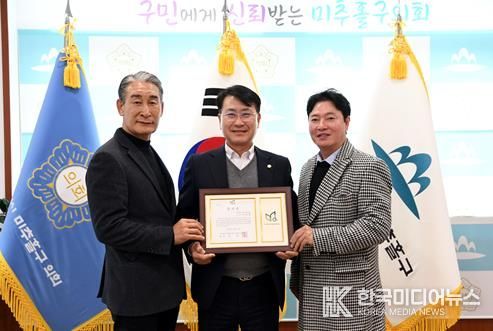 [ 한국미디어뉴스 최치남 기자 ] 인천광역시 미추홀구의회 장규철 부의장이 지난 18일, 사단법인 환경지킴이장애인연합회로부터 환경보호와 장애인 권익 증진을 위한 기여를 인정받아 감사장을 수여받았다.