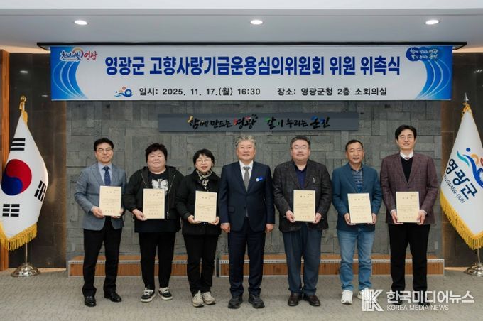 [ 한국미디어뉴스 이종철 기자 ] 영광군은 11월 17일 군청 소회의실에서 임기가 새로 시작되는 영광군 고향사랑기금운용심의위원회 위원 6명에 대해 위촉장을 수여했다.
