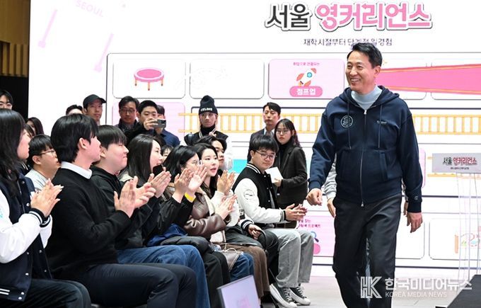 오세훈 서울시장, 서울 소재 54개 대학 재학생 100여 명이 참석한 가운데 열린 이날 행사에서는 김철희 서울시 미래청년기획관이 새로운 청년정책 비전과 서울 영커리언스 취지, 운영 계획을 설명하는 시간도 마련됐다.