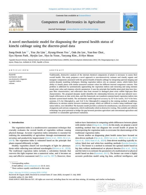 한편, 연구 결과는 올해 10월호 농업 분야 국제학술지 ‘컴퓨터스 앤 일렉트로닉스 인 애그리컬쳐(Computers and Electronics in Agriculture)(논문인용지수 8.9)’에 실려 학술적으로 인정받았다.