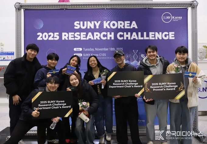 [ 한국미디어뉴스 이원영 기자 ] 한국뉴욕주립대학교(총장 아써 리)가 지난 18일 ‘2025 Research Challenge’를 개최하고, 한 해 동안 학생들이 수행한 다양한 연구 성과를 공유하는 자리를 마련했다.