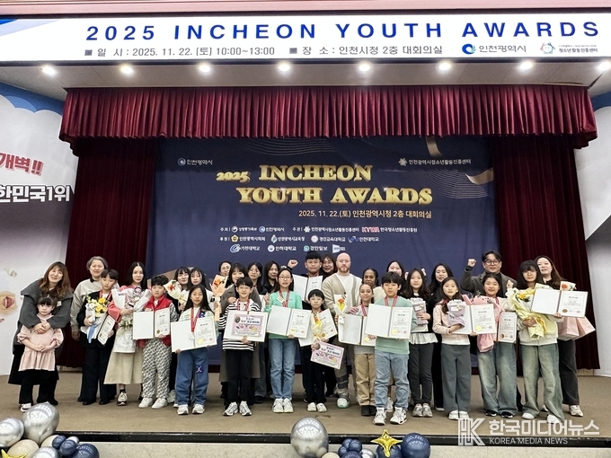 [ 한국미디어뉴스 이원영 기자 ] 인천광역시청소년활동진흥센터는 지난 22일(토) 인천광역시청 대회의실에서 한 해 동안 청소년활동과 자원봉사 분야에서 두드러진 성과를 보인 청소년과 청소년지도자를 격려하기 위한 ‘2025 INCHEON YOUTH AWARDS’를 개최했다.