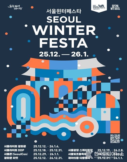 서울시는 12월 12일부터 2026년 1월 4일까지 24일간, 광화문광장~청계천~서울광장~DDP~보신각~우이천 6곳을 잇는 초대형 겨울축제 '2025 서울윈터페스타'를 개최한다고 밝혔다. 올해 행사는 궁중문화축전 및 전국무용제 등 대한민국 대표축제를 성공적으로 이끈 이재원 총감독이 지휘한다.