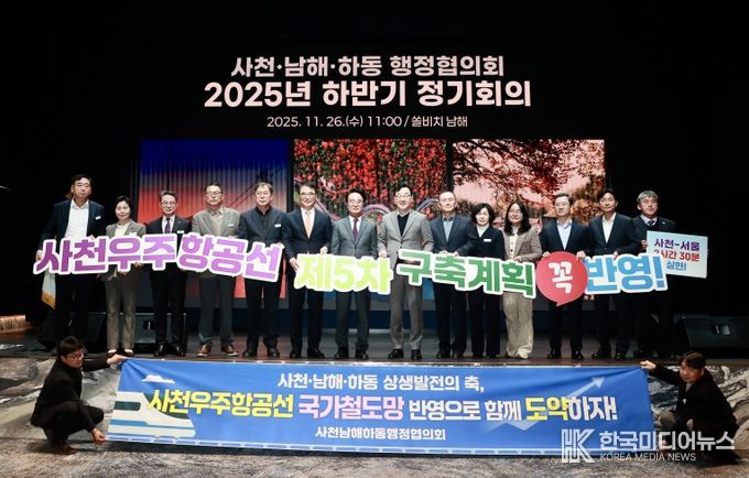 [ 한국미디어뉴스 이원영 기자 ] 사천시, 남해군, 하동군이 참여하는 ‘사천-남해-하동 행정협의회’가 11월 26일 쏠비치 남해 밀라노홀에서 2025년 하반기 정기회의를 개최했다.