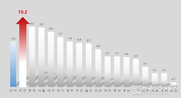 통계청이 발표한 ‘2025년 9월 인구동향’에 따르면, 인천시는 올해 1월부터 9월까지 출생아 수가 전년 같은 기간보다 10.2% 늘어나 전국 17개 시·도 가운데 가장 높은 증가율을 보였다. 반면, 충북(9.3%)과 서울(9.2%)이 그 뒤를 이었으며 전국 평균 증가율은 7.0%에 그쳤다.