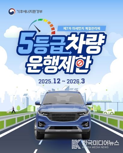[ 한국미디어뉴스 이원영 기자 ] 남원시는 고농도 미세먼지 발생이 잦은 겨울철을 대비해 2025년 12월 1일부터 2026년 3월 31일까지 ‘제7차 미세먼지 계절관리제’를 시행하며, 이 기간 중 배출가스 5등급 차량의 운행을 제한한다.