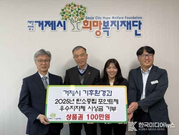 거제시 기후에너지환경부 주관 ‘2025년 탄소중립포인트제 우수 지자체 평가’에서 받은 시상금(온누리상품권 100만 원)을 전액 거제시희망복지재단에 기부했다고 27일 밝혔다.