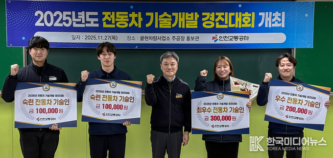 [ 한국미디어뉴스 이원영 기자 ] 인천교통공사(사장 최정규)는 지난 27일 전동차 안전운행 확보와 기술 경쟁력 강화를 위한 ‘2025년도 전동차 기술개발 경진대회’를 개최했다고 28일 밝혔다.