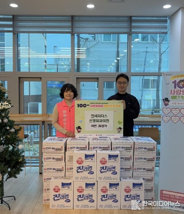 [ 한국미디어뉴스 김서안 기자 ] 의정부시 신곡1동주민센터는 11월 27일 연세리더스신경외과의원이 저소득 취약계층을 돕기 위해 라면 36상자를 기탁하며 ‘100일간 사랑릴레이 배턴 잇기’에 동참했다고 밝혔다.