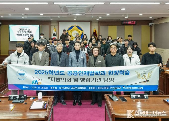 이날 의회 방문에는 김도협 학장을 비롯한 대진대학교 공공인재법학과 학생 40여 명이 참여했으며, 지방의회의 기능과 의정 활동의 생생한 현장을 직접 체험하고 지방자치에 대한 실질적인 이해를 높이기 위해 마련됐다.