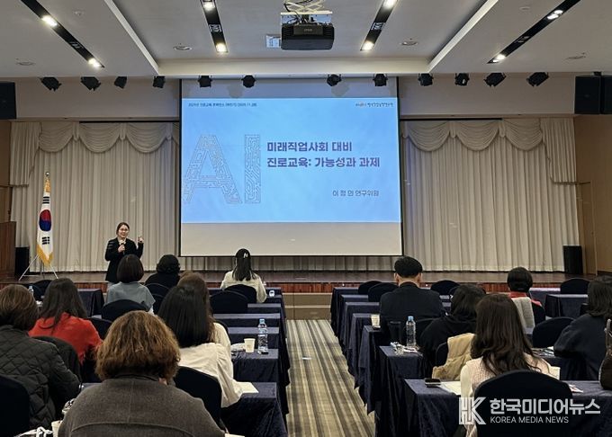 진로전담교사들의 창업·AI 기반 역량을 높이기 위한 특강도 마련됐다. 오전에는 여양고 김수지 교사가 ‘기업가정신 교육’을 주제로 학교 현장에서 실천한 사례를 발표했고, 오후에는 한국직업능력연구원 이정민 연구위원이 ‘미래사회 대비 AI 기반 진로교육의 과제’를 주제로 강의했다.