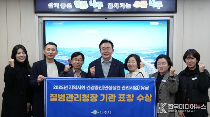 28일 나주시에 따르면 보건소 건강증진과는 2025년 호남권 만성질환 관리사업 ‘지역사회 건강증진’ 분야에서 우수 유공기관으로 선정돼 질병관리청장 표창을 수상했다.