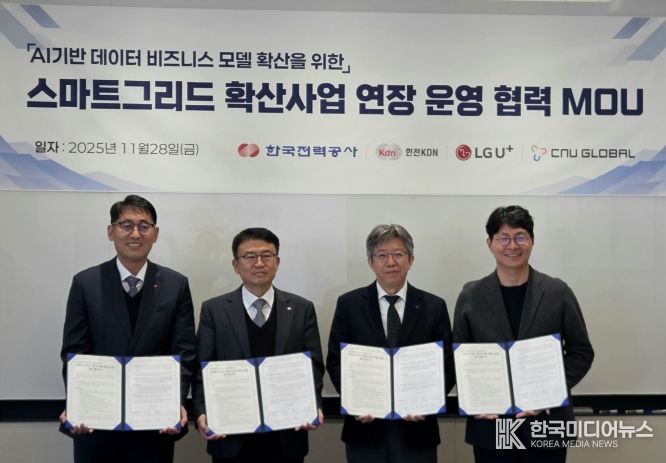 한전은 11월 28일 LG유플러스 본사에서 한전KDN, LG유플러스, 씨앤유글로벌과 함께 스마트그리드(Smart Grid, 이하 SG) 확산사업을 ’26∼’30년까지 연장 운영하기 위해『SG확산사업 연장 운영 업무협약』을 체결했다.