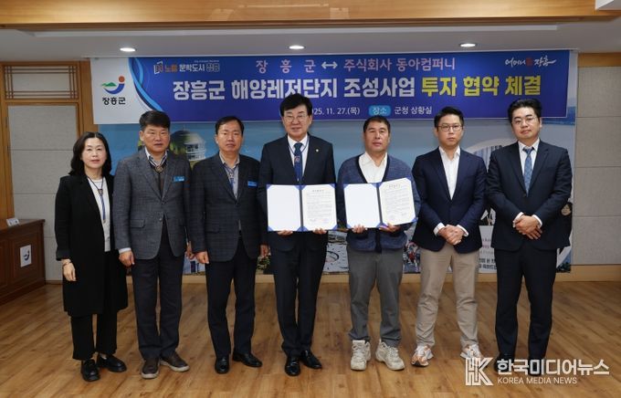 [ 한국미디어뉴스 이종철 기자 ] 장흥군은 27일 (주)동아컴퍼니와 150억원 규모의 해양레저단지 조성사업 투자협약을 체결하고, 지역 해양관광산업의 새로운 도약 기반을 마련했다.