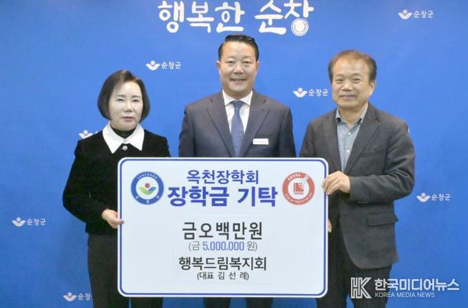 [ 한국미디어뉴스 이종철 기자 ] 순창군이 1일 (사)행복드림복지회에서 순창군옥천장학회에 장학금 500만원을 기탁했다고 밝혔다.