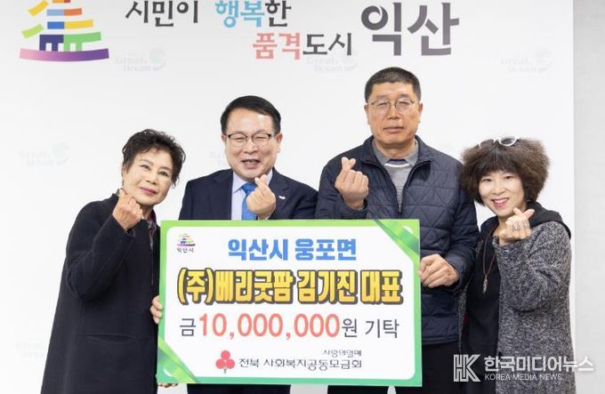 [ 한국미디어뉴스 이종철 기자 ] 익산시 웅포면에 위치한 농업법인 ㈜베리굿팜의 김기진 대표가 1일 시청을 방문해 성금 1,000만 원을 기탁했다.