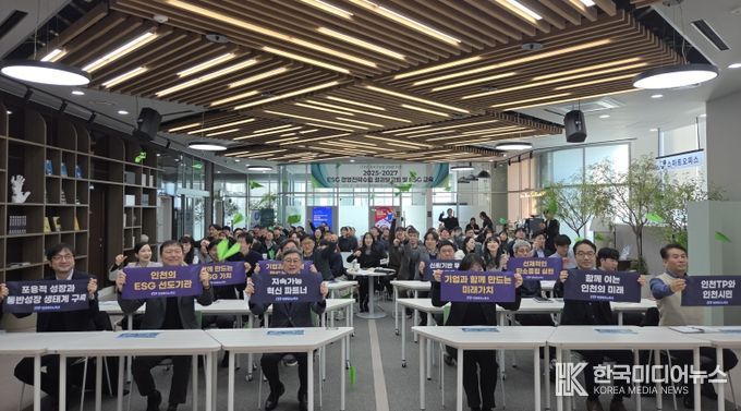 [ 한국미디어뉴스 이원영 기자 ] 인천테크노파크는(인천TP)는 1일 인천기업경영지원센터에서 임직원 대상 ‘2025-2027 ESG경영 비전선포식’을 개최했다고 밝혔다.