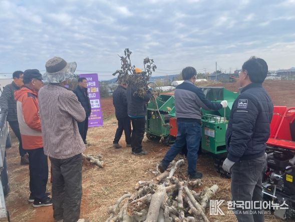 또한 군은 지난 11월 19일 수요가 늘어나고 있는 무화과 잔가지 파쇄를 효율적으로 추진하기 위해 중형급(35마력) 파쇄기 현장 시연을 추진하고 농업인들과 소통의 자리를 가져 농업인들에게 큰 호응을 얻었다.