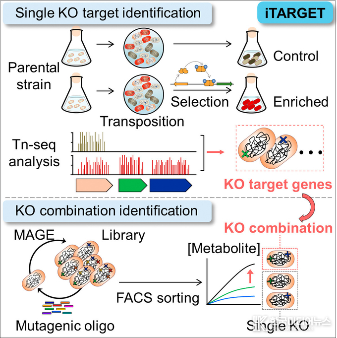 공동 연구팀은 이러한 문제를 해결하기 위해, 트랜스포존 기반 돌연변이 유도, 바이오센서 연동 선별, MAGE 기반 다중 유전체 편집 기술을 하나의 워크플로우로 통합한 플랫폼(iTARGET)을 구축했다. 이 시스템을 활용해 대장균 유전체 내 생산성 향상에 기여하는 후보 유전자 9개를 신속히 확보했고, 이들 간 조합을 대규모로 탐색해 최적의 유전자 변이 조합을 실험적으로 규명했다. 특히 바이오센서 기반 선별 기술은 기존 대비 높은 속도와 정밀도로 변이주를 식별해 고효율 균주 확보에 중요한 역할을 했다.