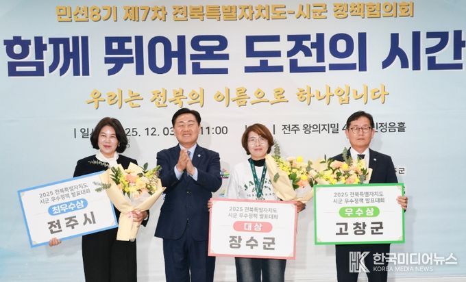 도는 3일 전주 왕의지밀 컨벤션에서 '함께 뛰어온 도전의 시간. 우리는 전북의 이름으로 하나입니다'라는 슬로건 아래 민선 8기 제7차 도-시군 정책협의회를 개최했다. 김관영 전북자치도지사와 정헌율 시장군수협의회장(익산시장)을 비롯한 시장·군수가 참석해 도정 핵심과제와 시군 우수 정책을 공유했다.