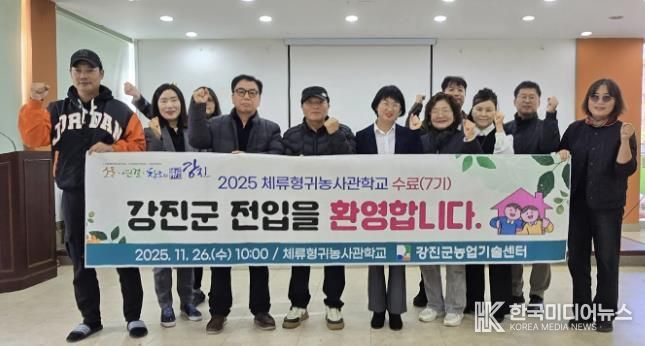 [ 한국미디어뉴스 이종철 기자 ] 강진군은 지난달 26일 체류형귀농사관학교 7기 교육생 수료식을 열고, 9개월간의 체류·교육 과정을 성공적으로 마친 교육생들이 강진에서의 새로운 정착 단계에 들어섰다고 4일 밝혔다.